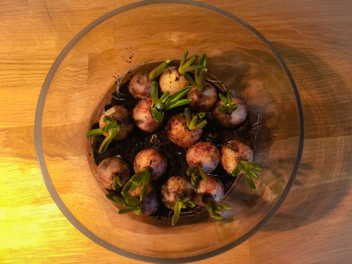 När jag hämtade Nemo i skolan var jag tvungen att åka förbi blomsteraffären för att köpa lite nya blommor till fönstren och så var jag jättesugen på pärlhyacinter, det är vår för mig. Krokus, påskliljor och pärlhyacinter.. En kruka och en stor glaskruka fick följa med hem också, älskar att pyssla med blommor. Det gör så mycket för ett rum tycker jag.