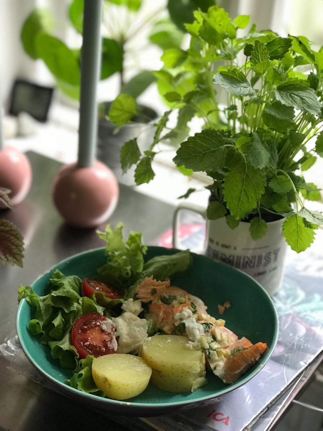 I söndags gjorde en kollega till mig en sjukt god lax som jag var tvungen att göra hemma idag. Jättegod och en rätt med få points vilket är bra för mig.
