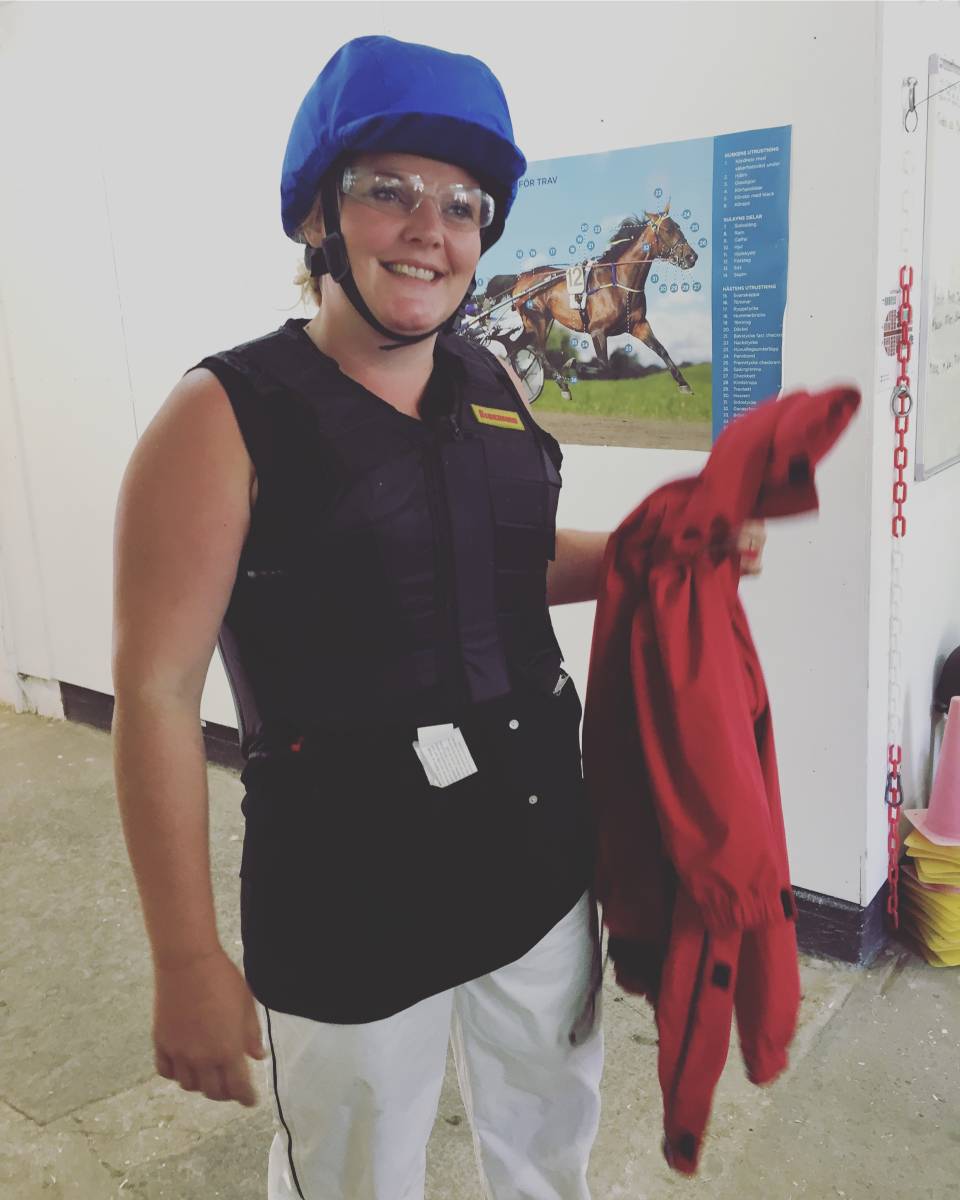 Första stoppet blev på Jägersro travbana där Elin skulle få testa på att vara kusk. Hon fick göra iordning hästen och blev klädd i snygga kläder och sen gav vi oss ut på travbana. Jävlar vad det gick! Och då sprang hästen inte ens lika fort som på tävling. Det såg riktigt kul ut och Elin tyckte det var jätteroligt.