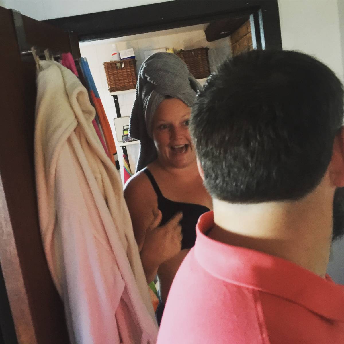 Elin fick en packlista och medan hon hämtade alla grejer så drack vi bubbel och åt frukost innan vi strax efter nio gav oss av till nästa destination. Elin fick åka med ögonbindel och fick en STOR ballong hon var tvungen att ha med sig hela dagen.