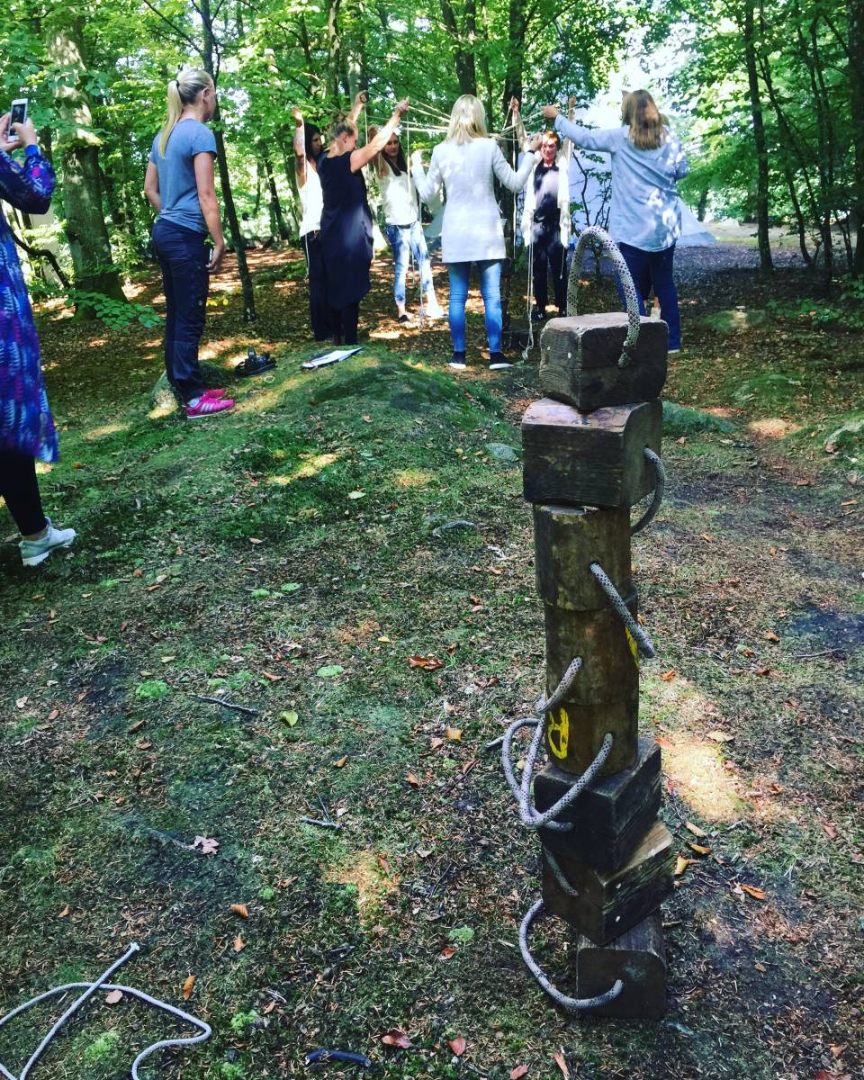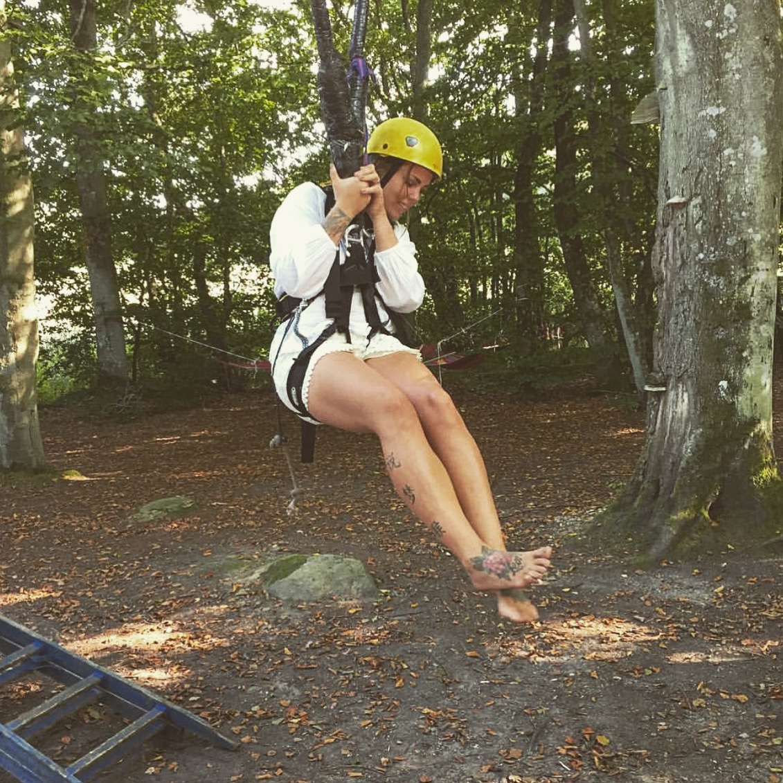 Efter femkampen fikade vi och sen fick de som ville hissas upp 9 meter i en sele för att sen själv dra ut en sprint och släppas ner och gunga bland träden. Jag ville inte göra det men gjorde det ändå. Jag hatar höjder och att falla handlöst.