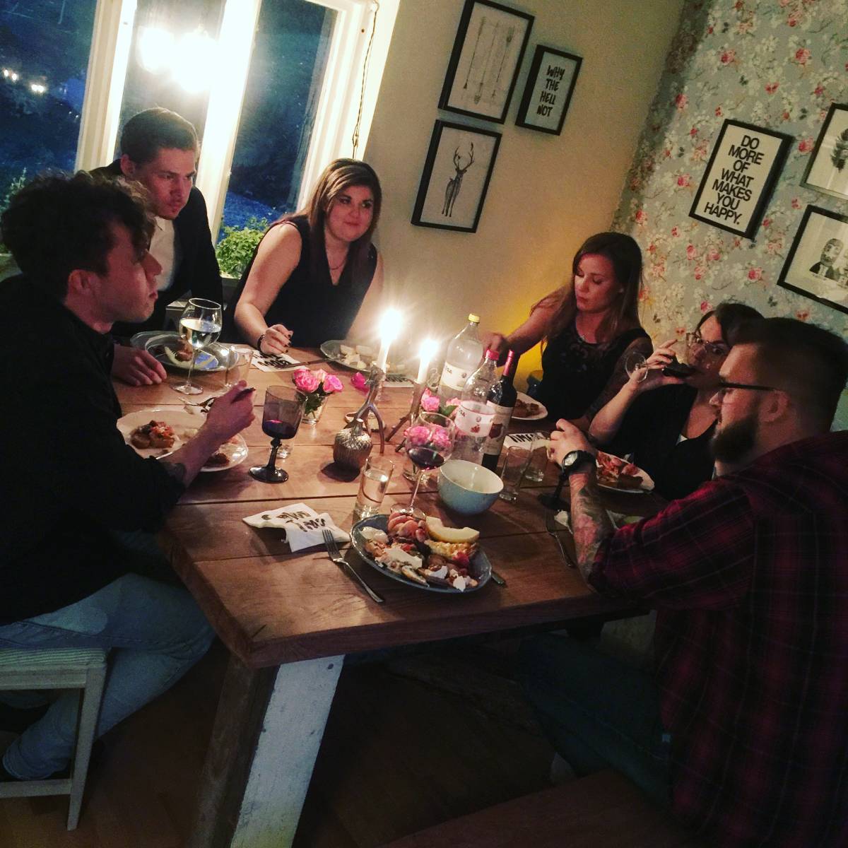 Efter campet åkte vi tillbaka till Malmö igen och till den scoutstuga vi hyrt. Ida hade varit där och fixat iordning kvällen innan och Elin blev avsläppt med en karta en bit därifrån och vi andra fixade med maten medan vi väntade in Elin. Sen hade vu lite lekar under kvällen, gissa på personliga saker, göra brudklänningar av toapapper och frågesport om Elins blivande man. Och så åt vi jättegod mat och lyssnade på musik och hade en jättetrevlig kväll.